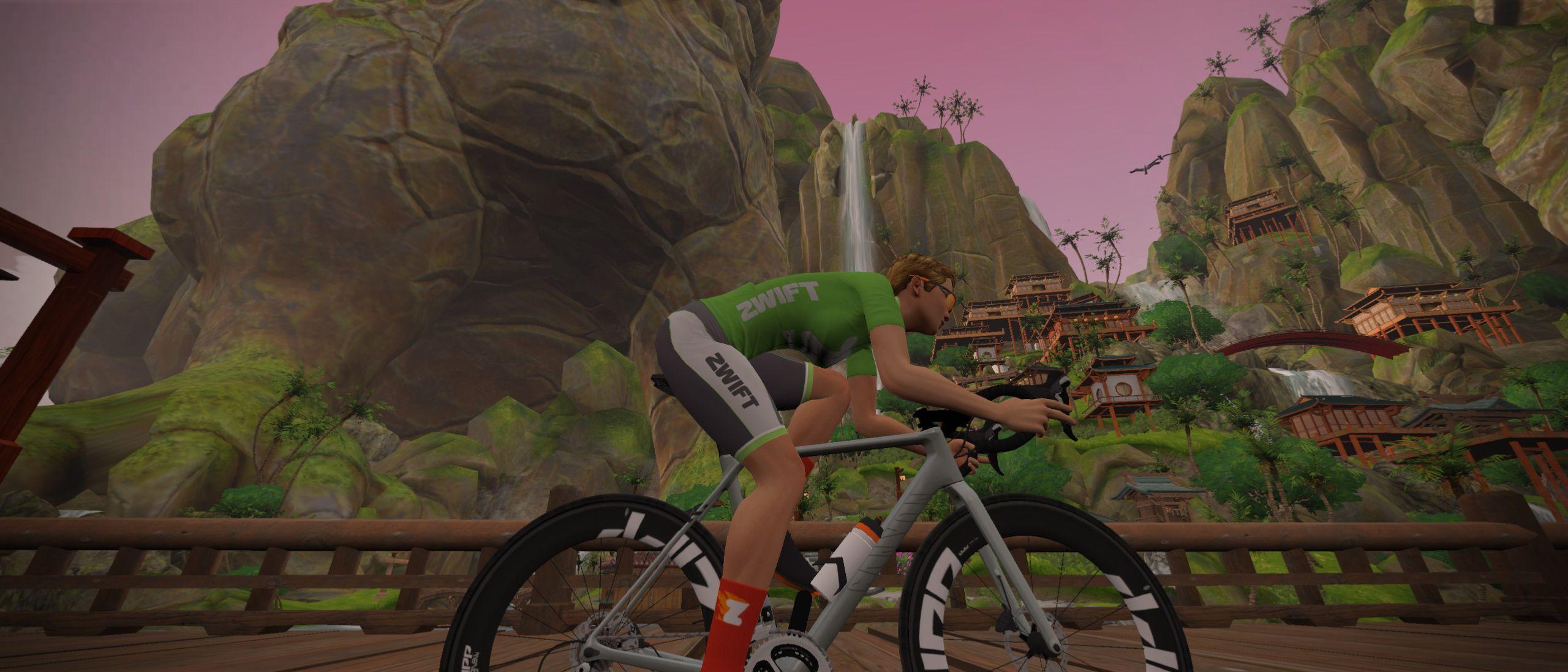 Go aero! While this is a climby route, the climbs are short and slack enough that an aero bike delivers uphill performance slightly better than a climbing bike. See Fastest Frames and Wheels at Each Zwift Level >