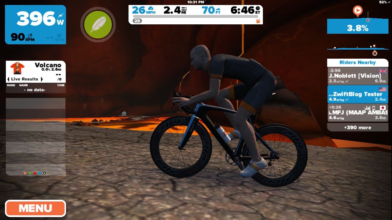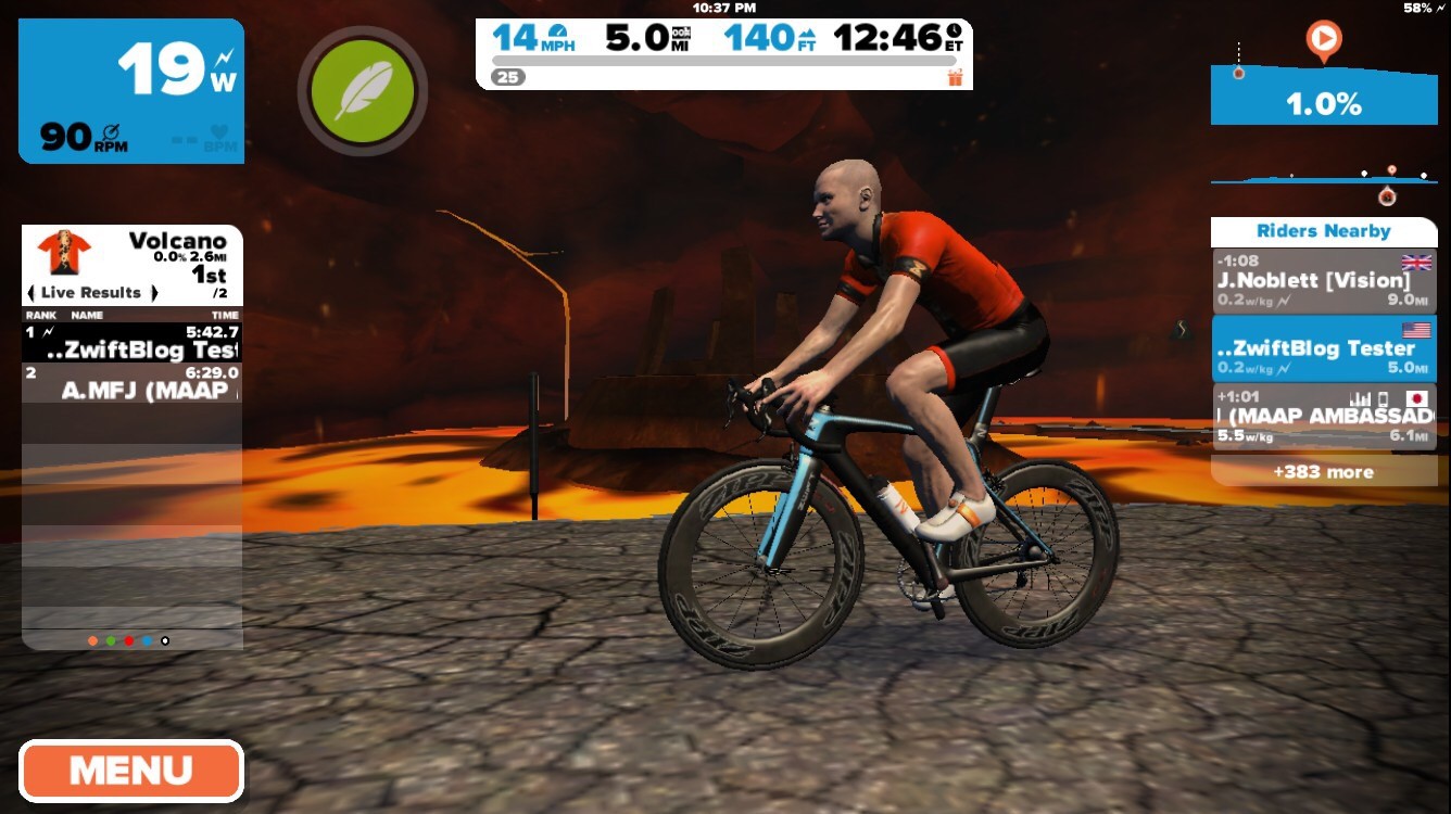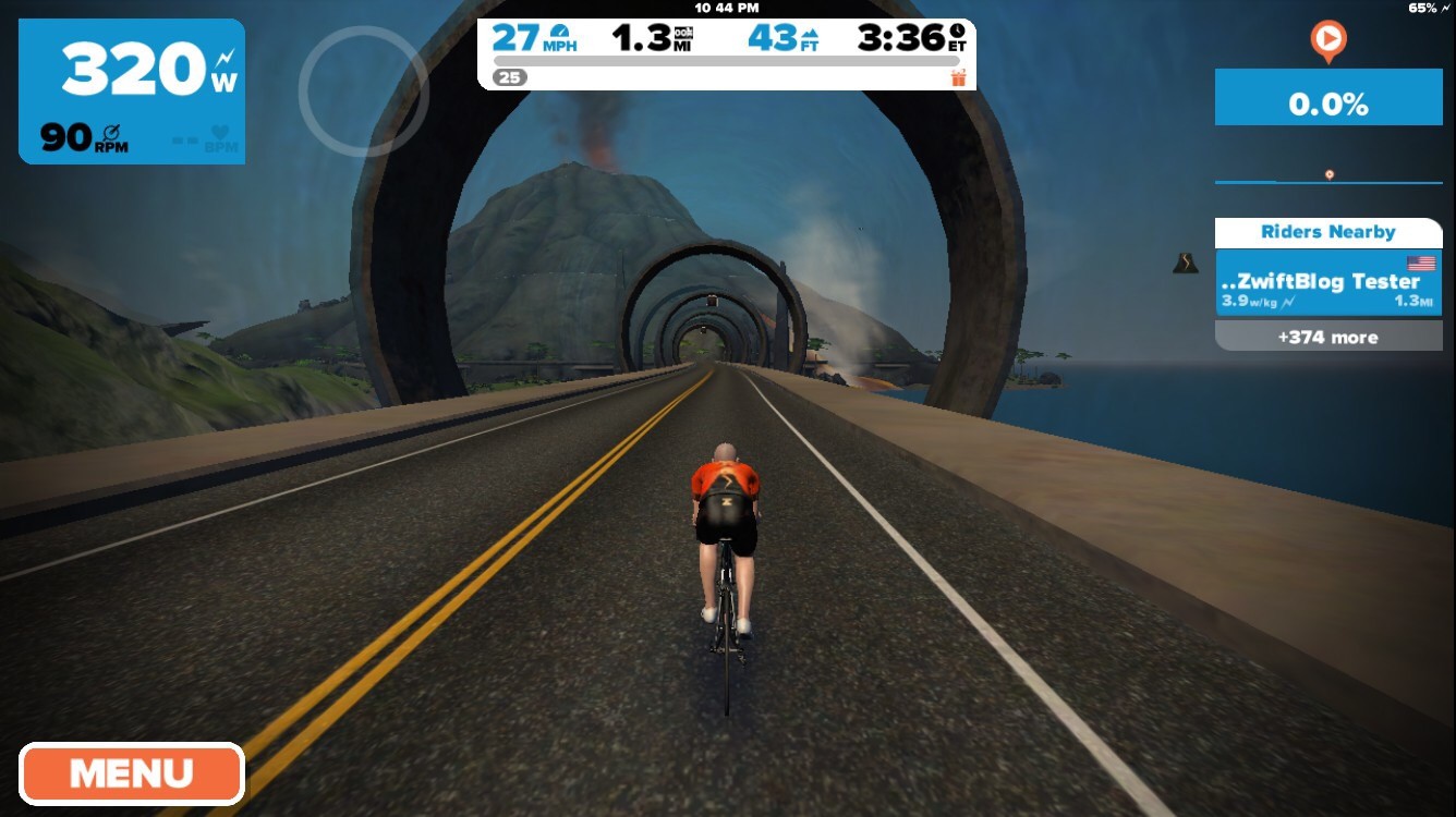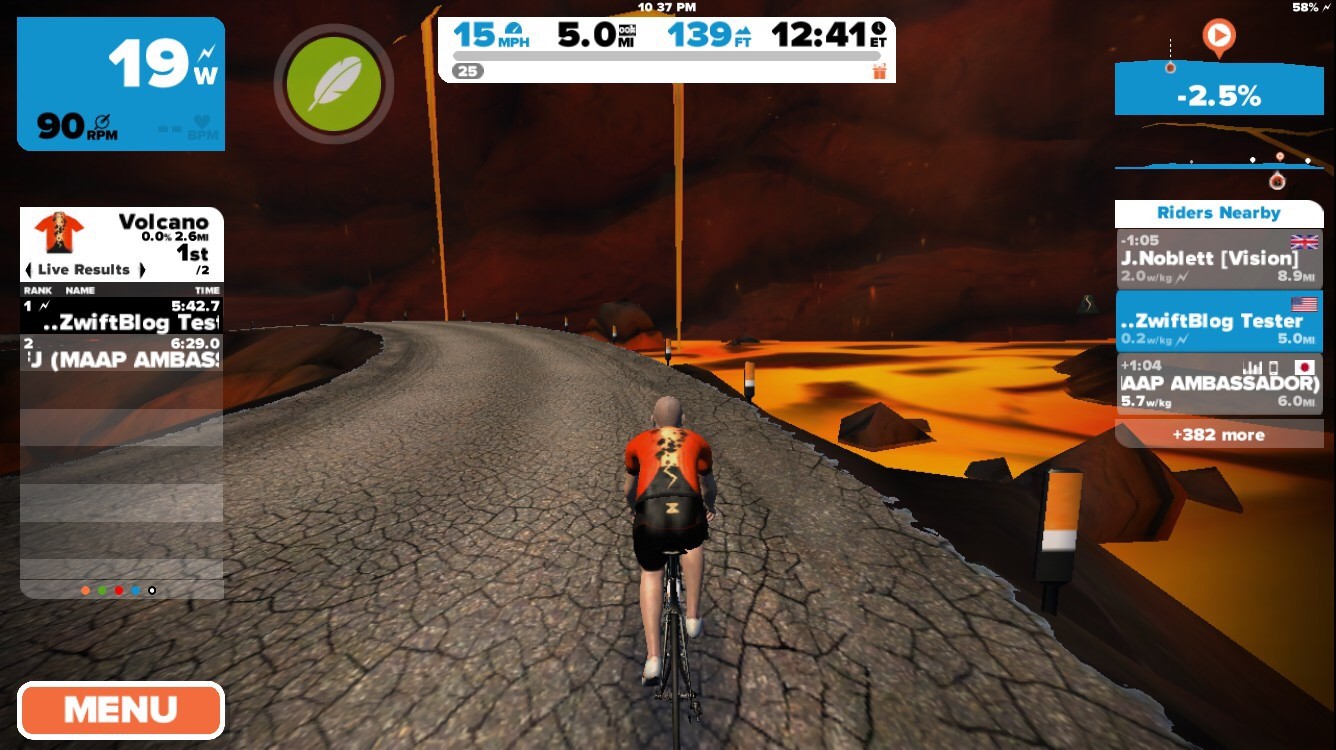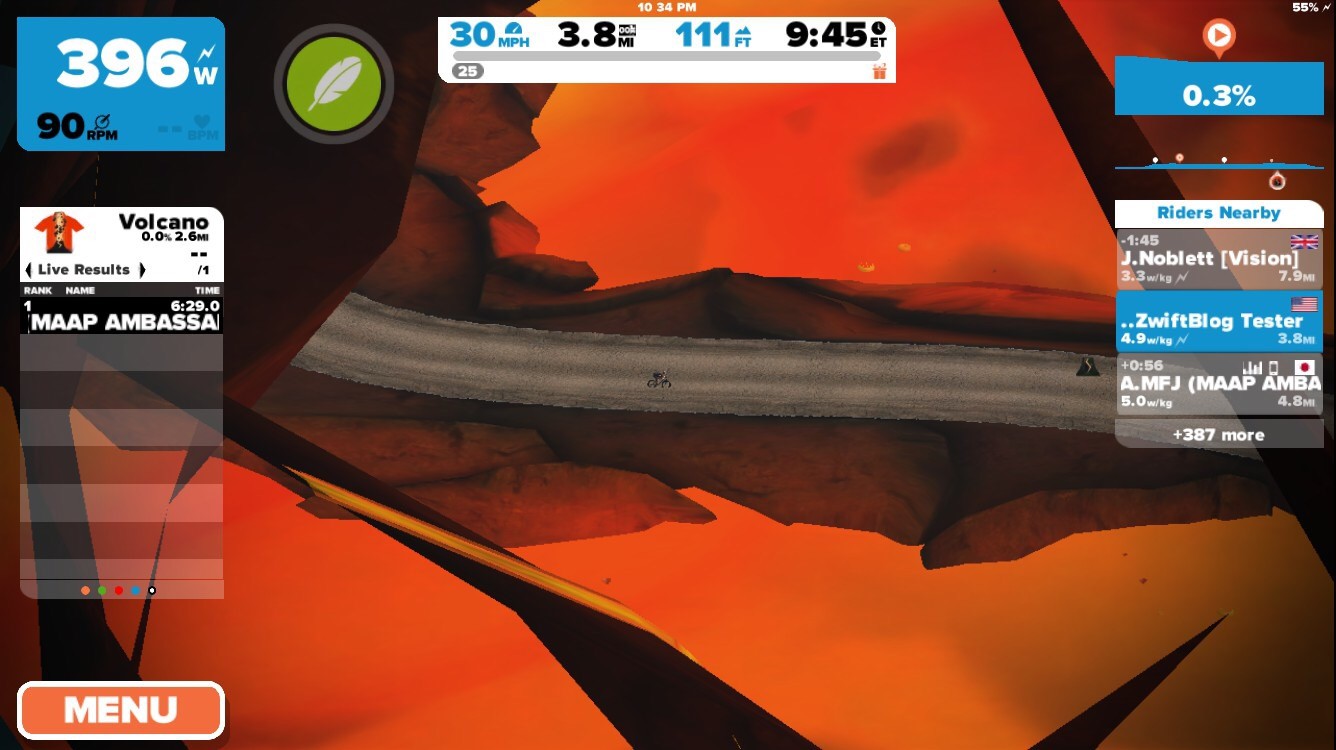 Zwift has just been updated with a new a series of Watopian roads based around an active volcanic island. The expansion consists of a loop (4.1km, 2.6 miles) around and through the volcano, with connecting roads to the south (a dirt road at the Italian Village) and east (a new ocean tunnel which can be found just before the final tunnel on your way to the start/finish banner).