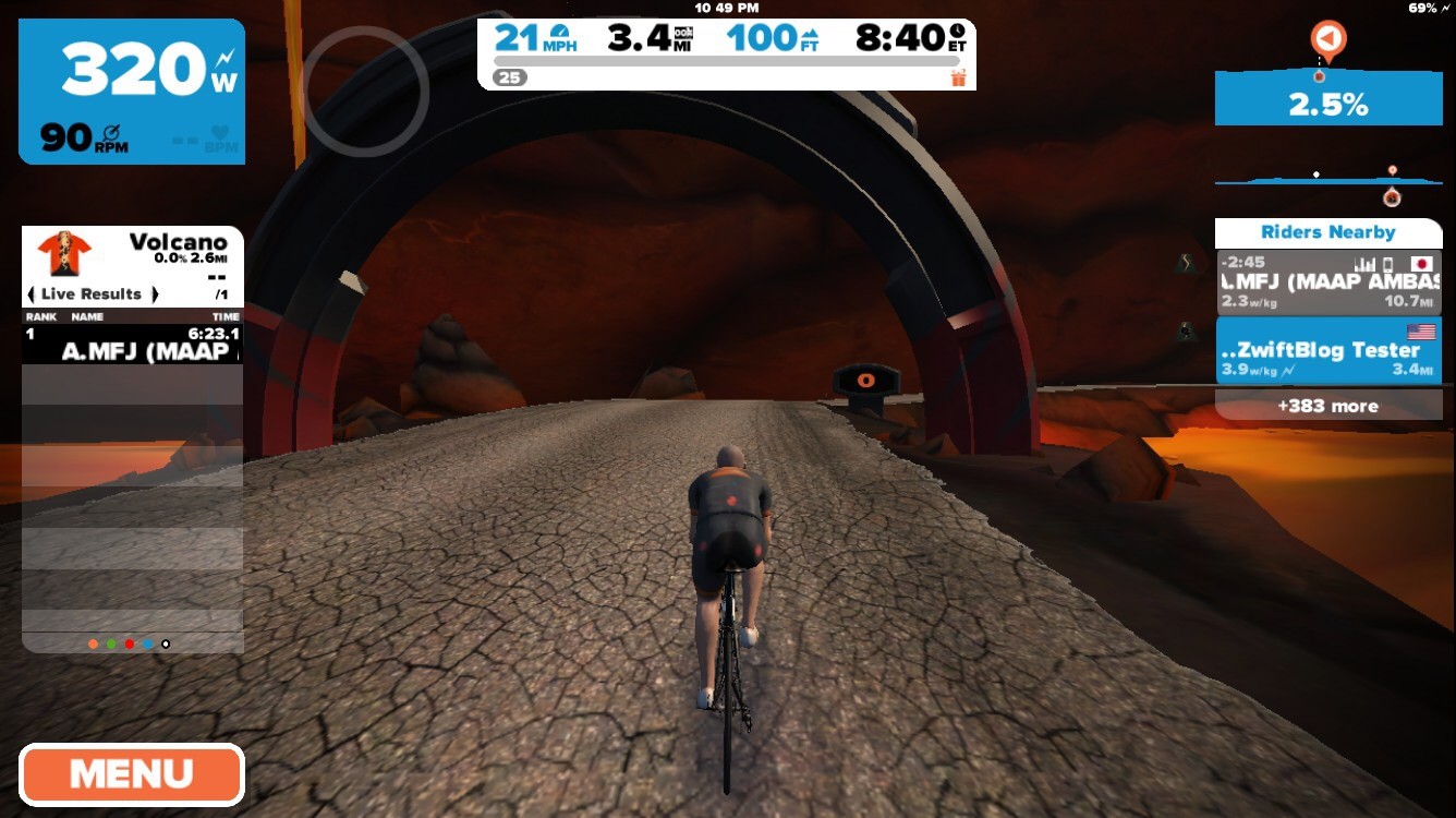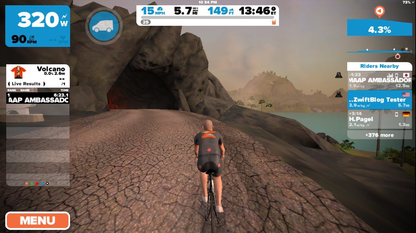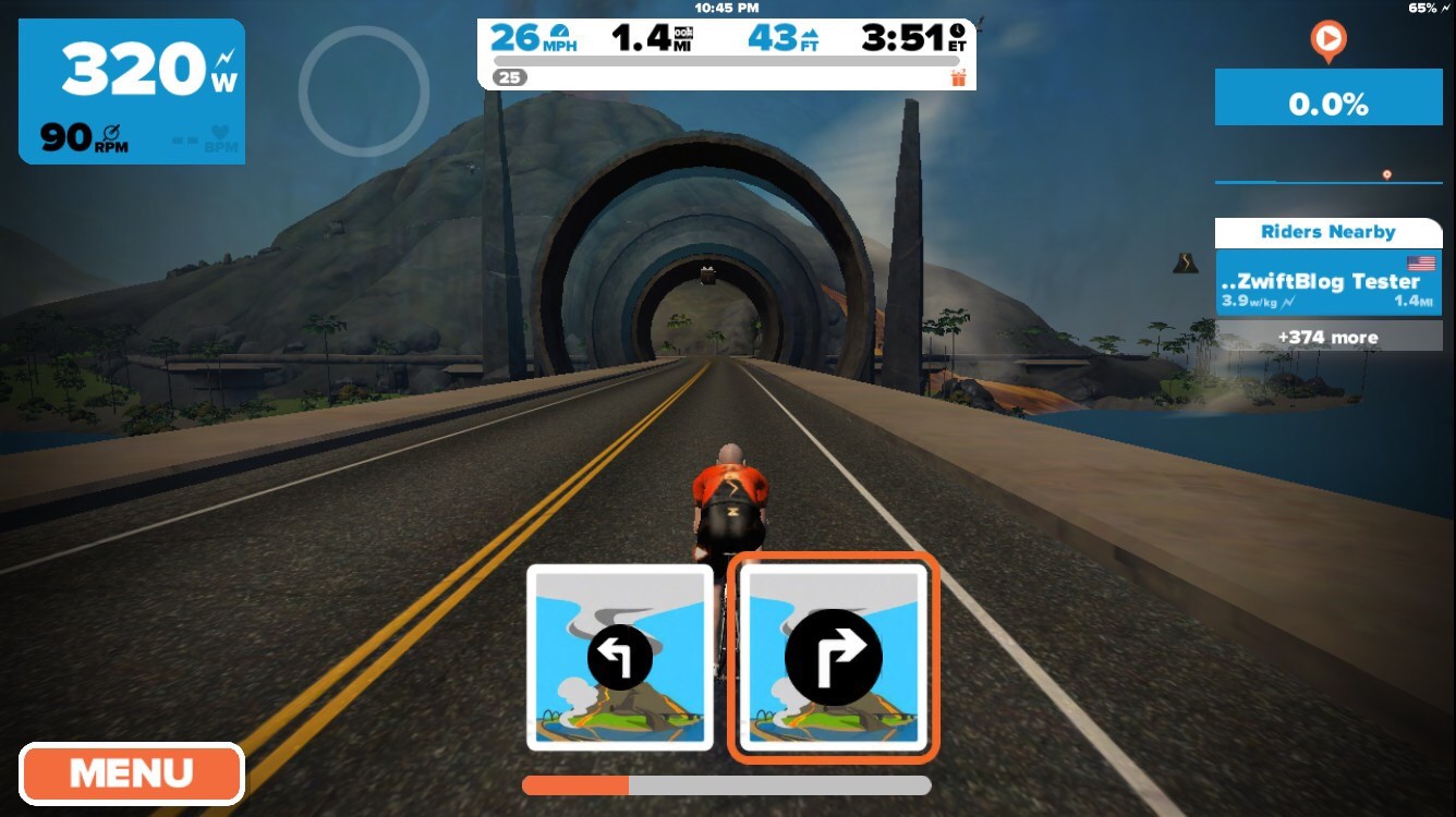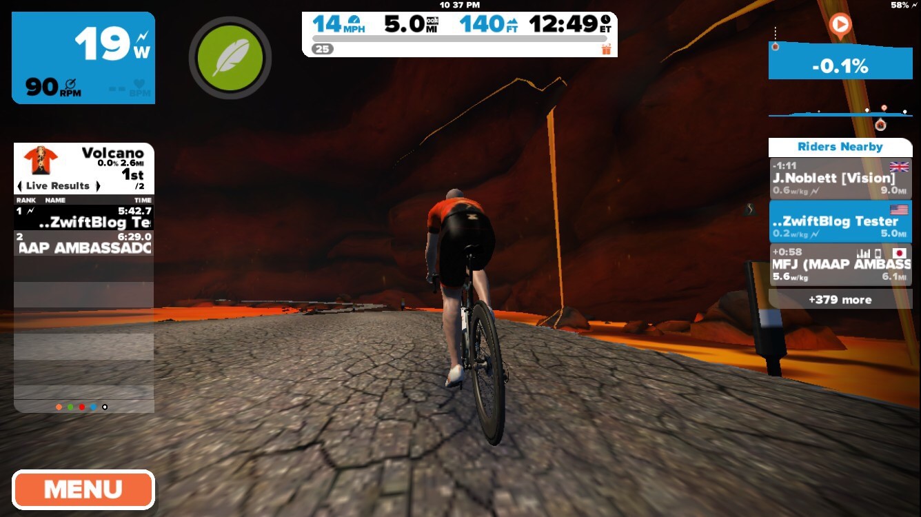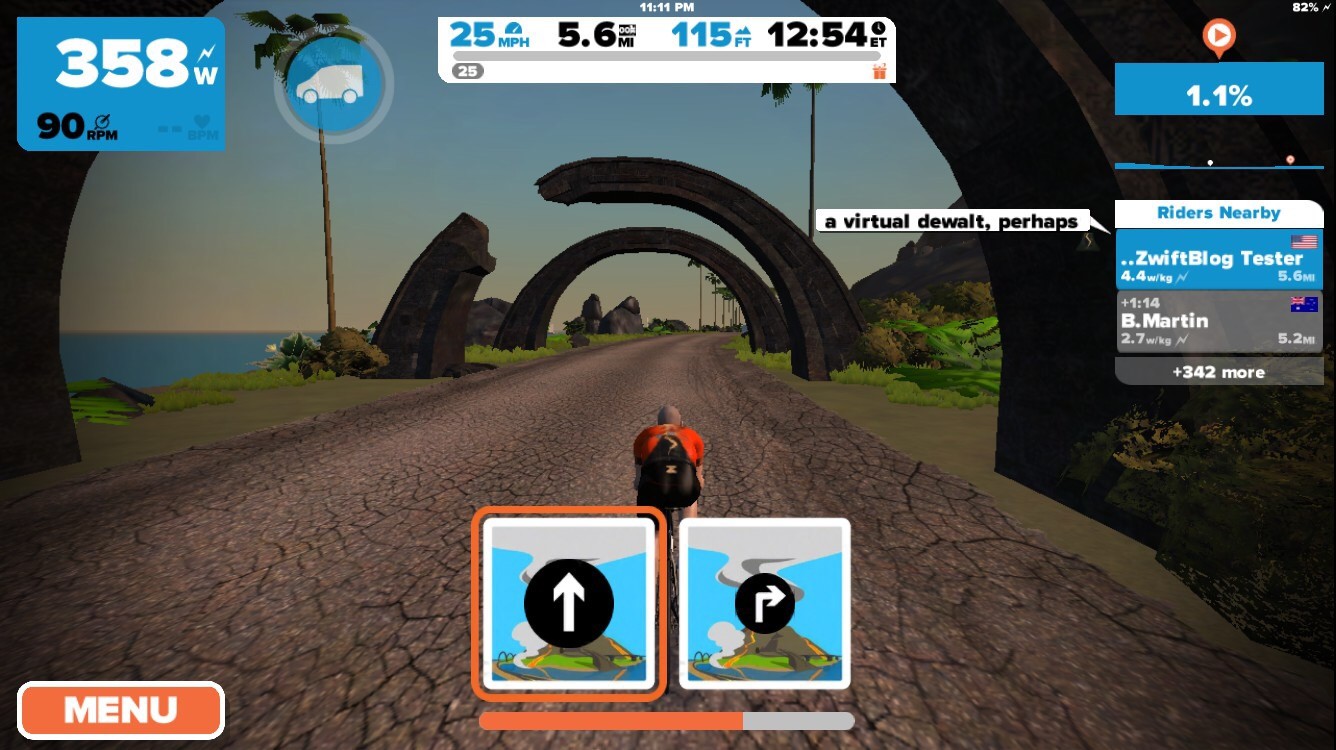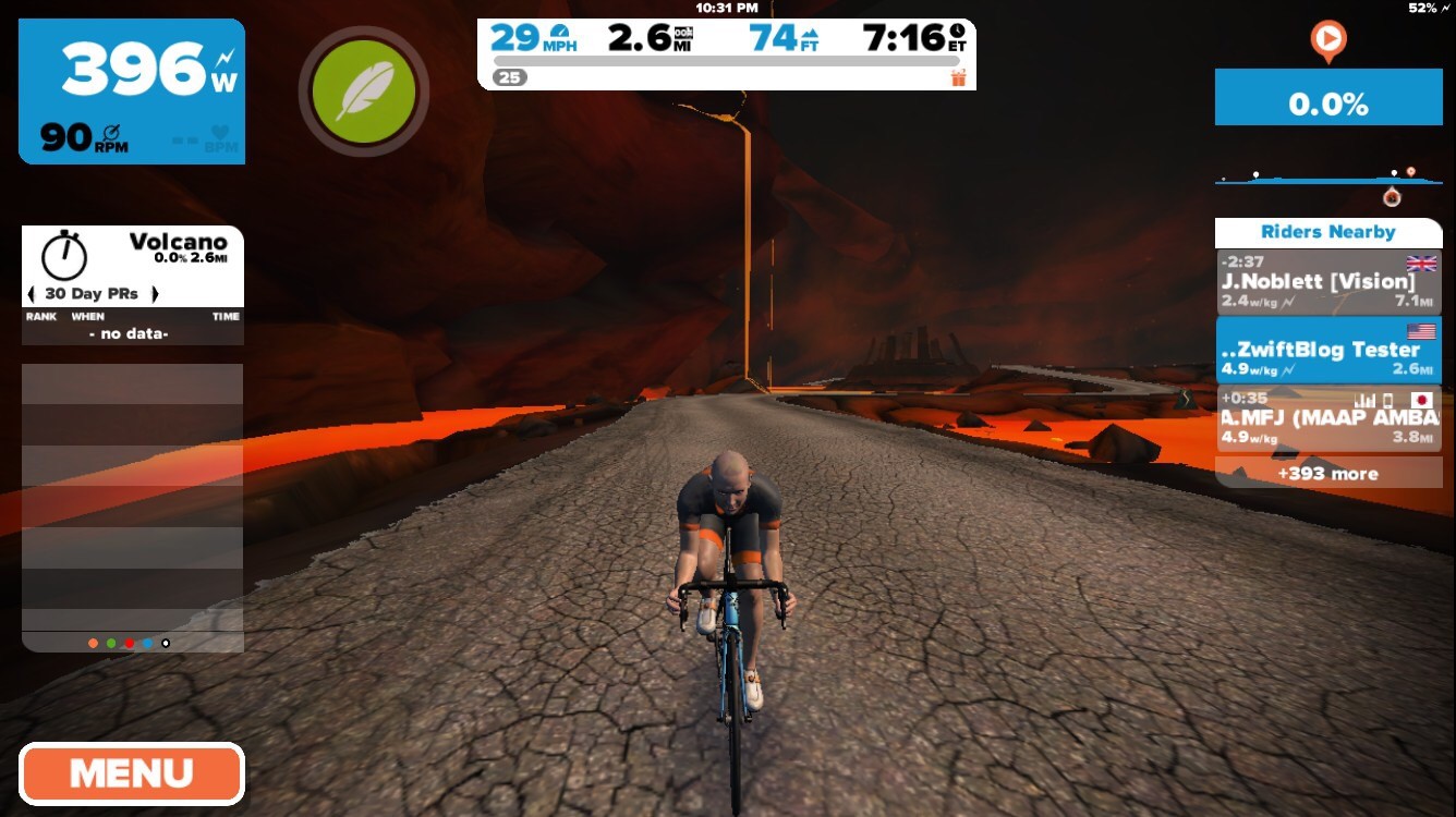 Zwift has just been updated with a new a series of Watopian roads based around an active volcanic island. The expansion consists of a loop (4.1km, 2.6 miles) around and through the volcano, with connecting roads to the south (a dirt road at the Italian Village) and east (a new ocean tunnel which can be found just before the final tunnel on your way to the start/finish banner).