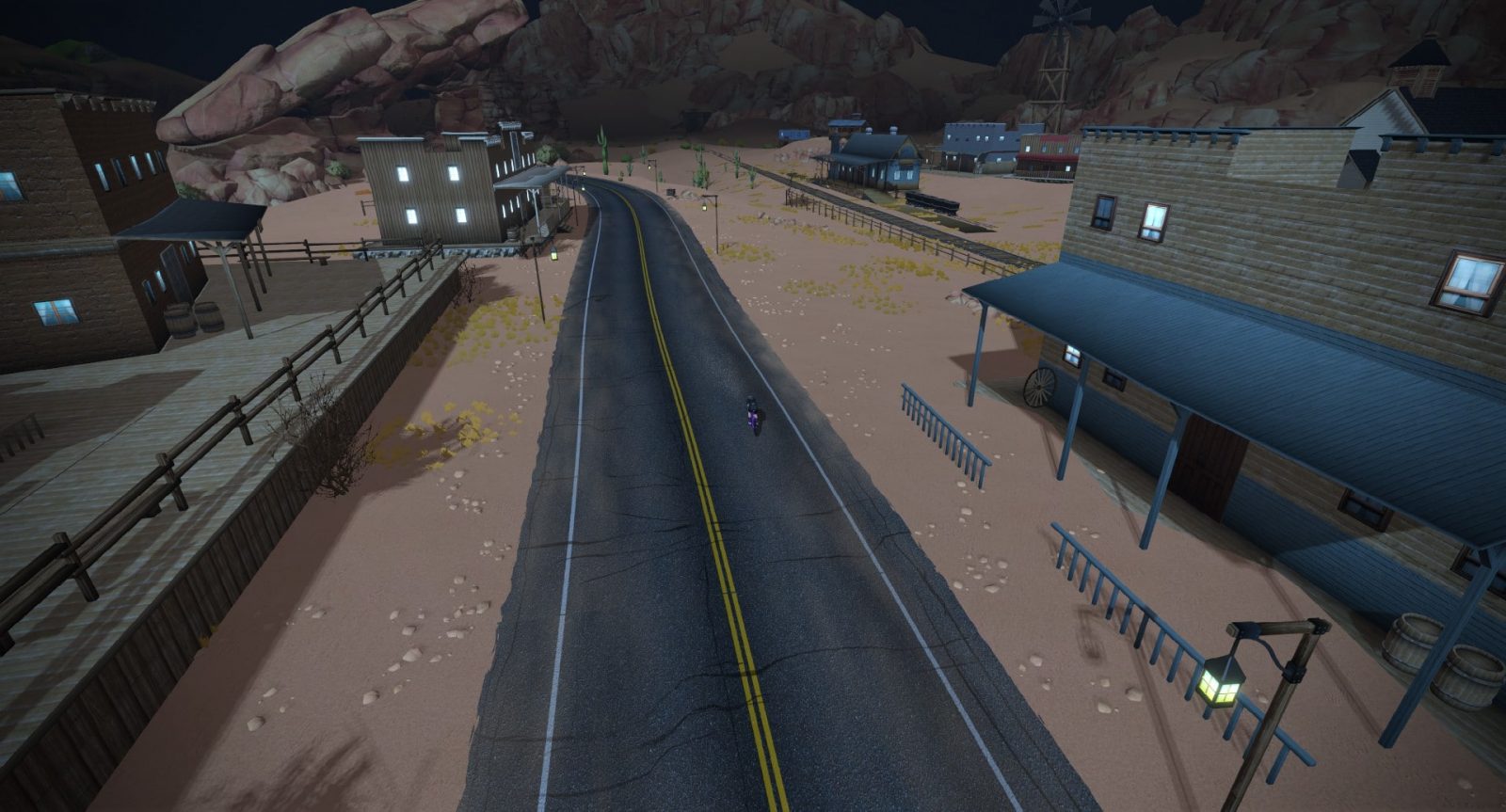 The first town “Desert Flats”, an old Wild West sort of place, complete with a steam train rolling through (good luck outpacing it) and Watopia’s oldest (and only) saloon. The second town is Saddle Springs, a Palm Springs-style resort featuring Googie-style architecture from the mid-1900’s which was inspired by the “space age” of the time.
