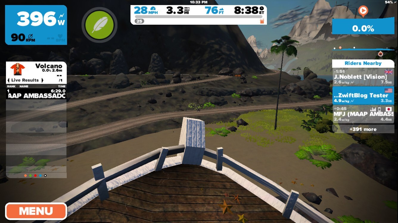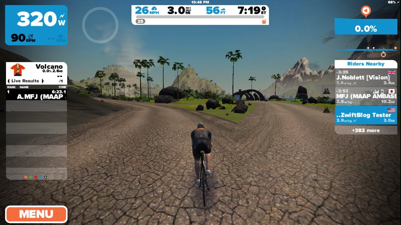 Zwift has just been updated with a new a series of Watopian roads based around an active volcanic island. The expansion consists of a loop (4.1km, 2.6 miles) around and through the volcano, with connecting roads to the south (a dirt road at the Italian Village) and east (a new ocean tunnel which can be found just before the final tunnel on your way to the start/finish banner).